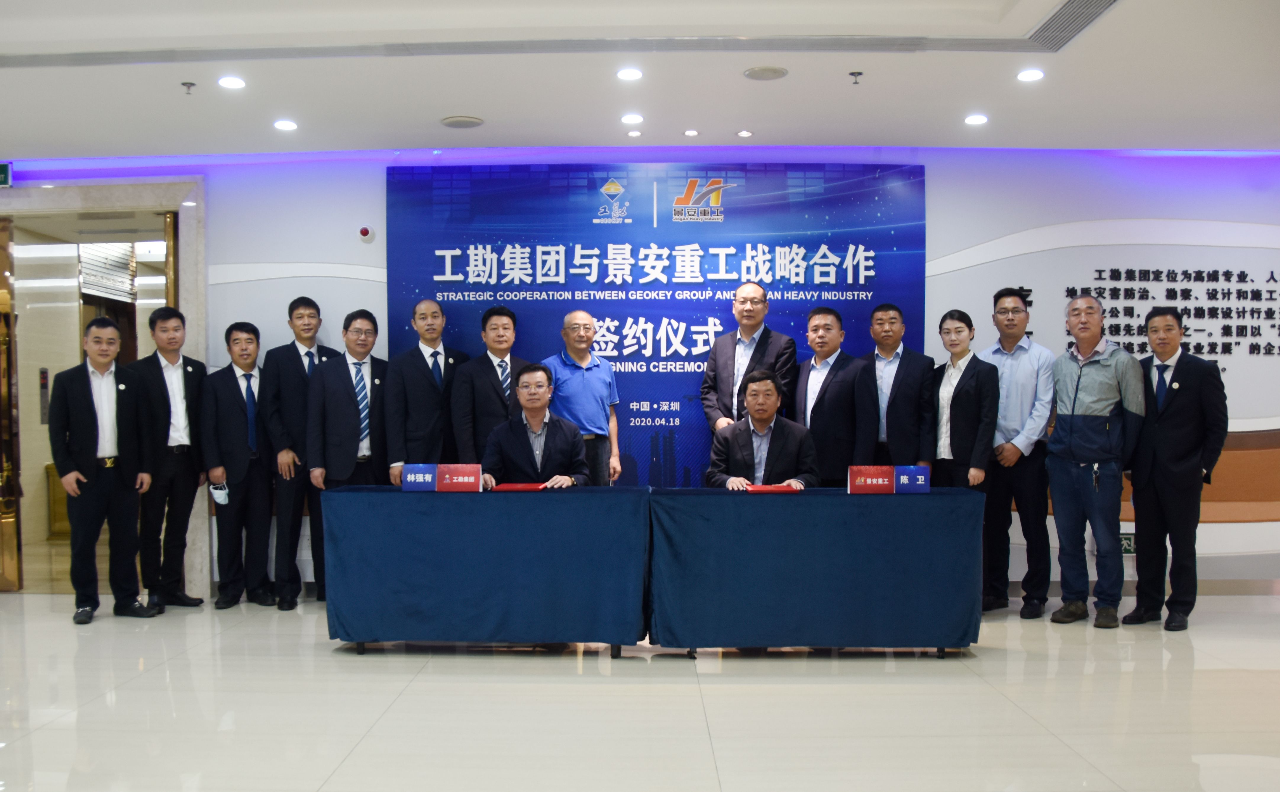 2020年4月18日上午,工勘集團(tuán)與徐州景安重工機(jī)械制造有限公司(以下簡稱景安重工)戰(zhàn)略合作框架協(xié)議簽約儀式在工勘集團(tuán)總部舉行。景安重工董事長陳衛(wèi)、總經(jīng)理魏垂勇、副總經(jīng)理李景峰,工勘集團(tuán)董事長林強(qiáng)有,工勘巖土集團(tuán)副董事長雷斌、總經(jīng)理李紅波、總工程師王賢能、副總經(jīng)理付文光、李新元等雙方領(lǐng)導(dǎo)及相關(guān)部門負(fù)責(zé)人出席了簽約儀式,深圳市土木建筑學(xué)會(huì)巖土工程專業(yè)委員會(huì)主任劉小敏等嘉賓受邀見證了簽約。